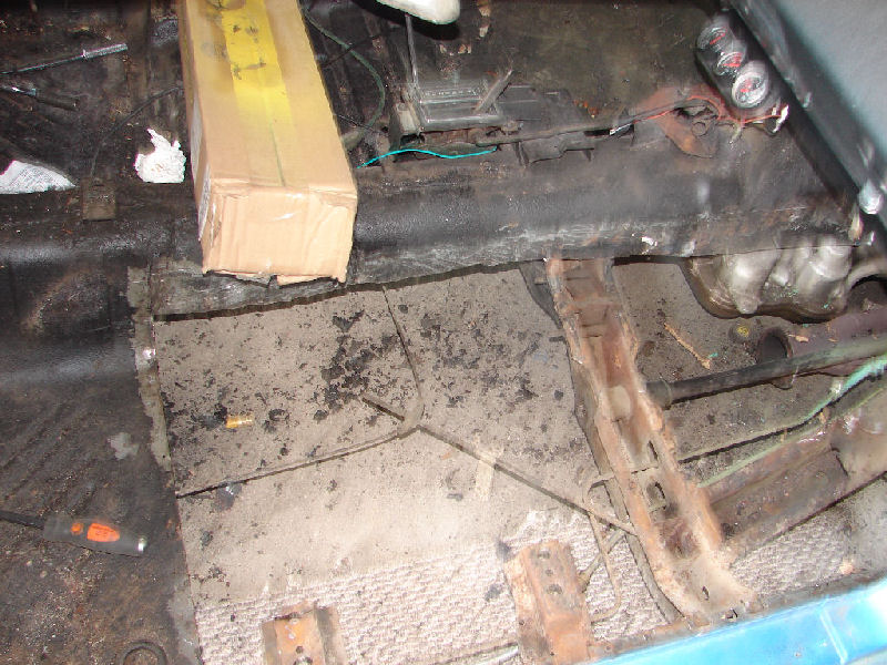 Above is passenger side floor pan after the bits and pieces that had been riveted in as patches and then smothered under a quarter inch of undercoating were cut out. Had to cut the rear floor pan out on this side as well.
