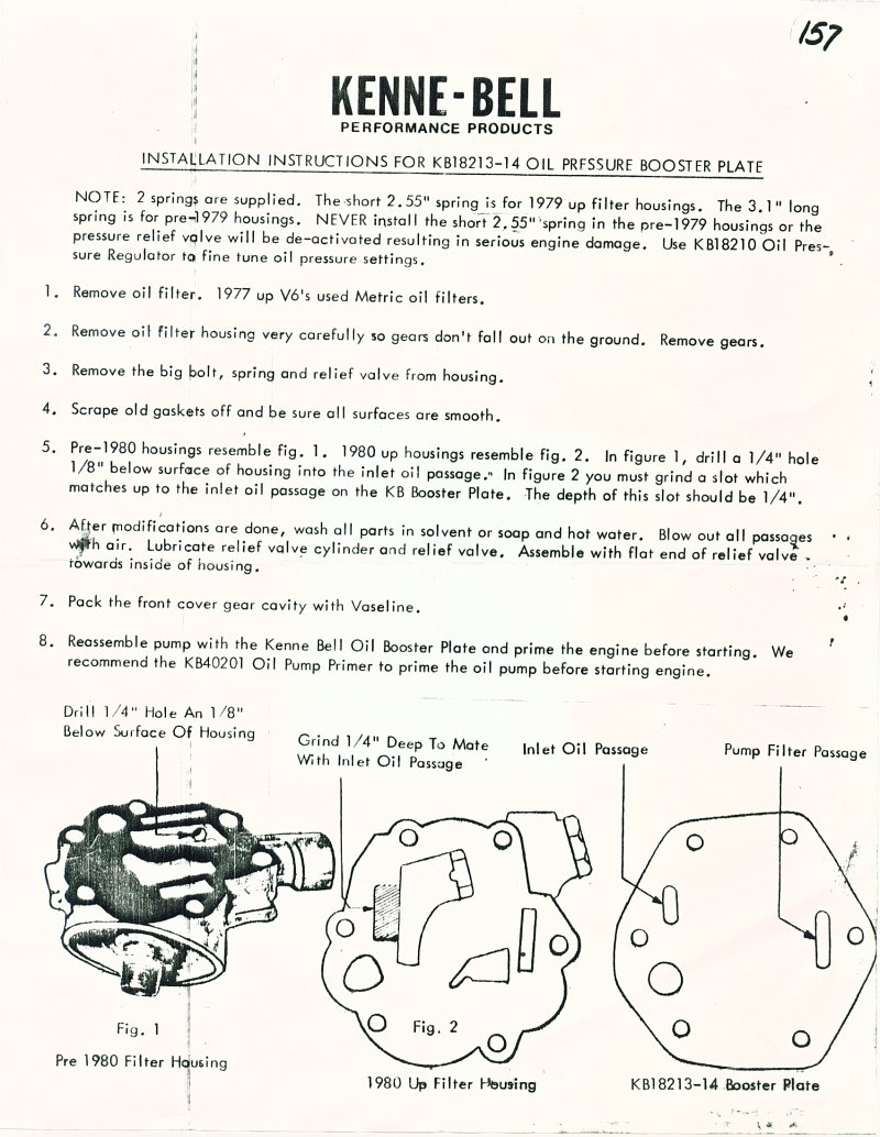 Then we have the simple fact that it takes more hp to turn the pump and the effort to do so puts a strain on the front cam bearing and the drive rod. Front cam bearing wears and the oil pressure starts bleeding off at the bearing leak. (I think too stiff valve springs aggravates cam bearing wear also, but, that's another topic.)