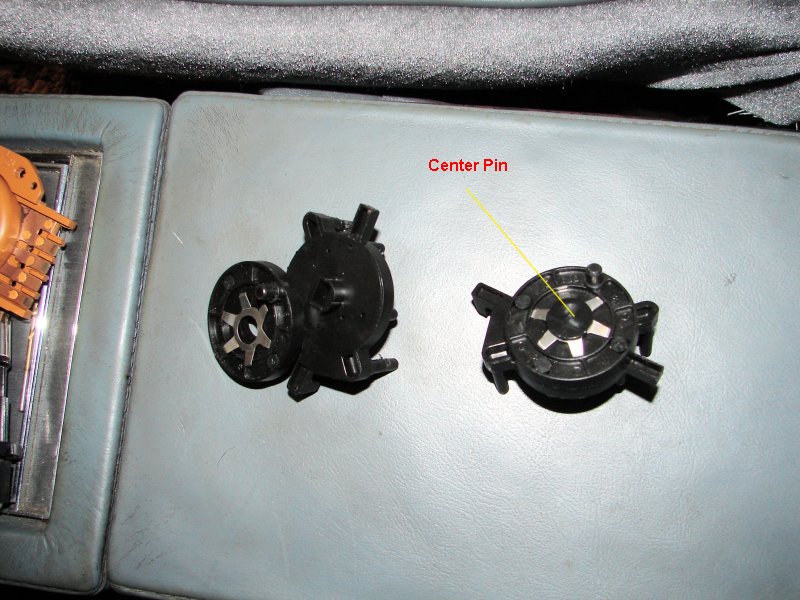 Below is a picture of the old switch and the new one. Note how the old one has separated into two pieces due to the plastic pin that went thru the center having broken.