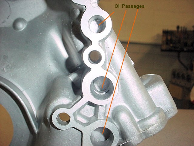 It's hard to take a picture of the oil passages, but, it is absolutely necessary to examine the passages and remove any casting flash which might prevent or minimize oil flow. It is extremely common for the intersection of some passages to be blocked by casting flash and it is frustrating to assemble an engine and be unable to prime the oil system or have low pressure/volume due to this blockage. It's a good idea when cleaning out the flashing to radius the intersections of intersecting passages to improve the flow of oil around corners. Get out your Dremel tool.