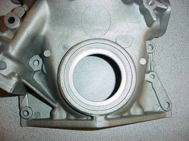 This is a picture of the front crankshaft seal area at the bottom of the cover taken from the front of the cover.