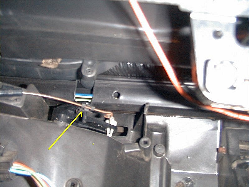The temperature control cable attaches to a lever in the hvac box. It is fairly common for the tip of this lever to break off and the cable no longer controls the door that this lever is attached to.