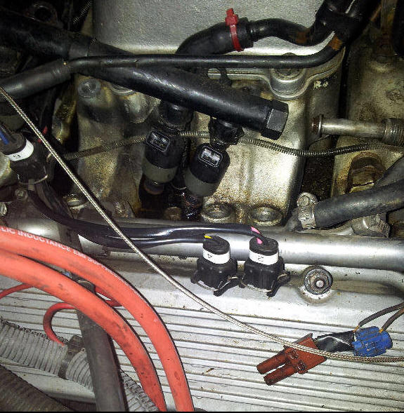 How the injectors are removed depends upon whether the original factory retainer clips are still there, or if they have been discarded in the past during a prior swap. This is the fourth swap on this car and surprisingly, I kept putting them back on. I tossed them the first time I did a swap on the other car. Go figure. It makes no difference whether they are in place, or not. Once installed, the injectors cannot go any place.