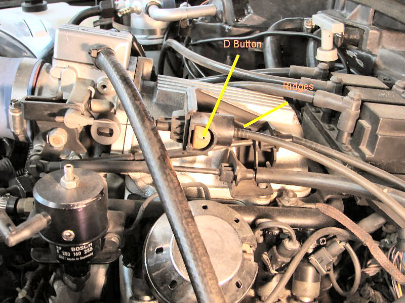 1. With the engine NOT running, depress the D Button (it may be hot and/or difficult to press so I use a screwdriver or a key, etc) and grab the cable behind the ridges. Pull it back toward the firewall. Then let the D Button go back to its normal position.
