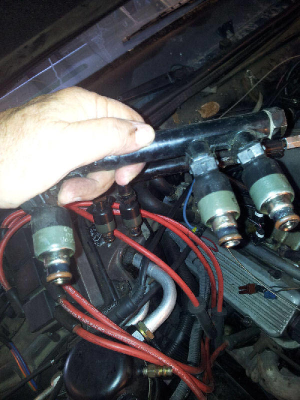 How the injectors are removed depends upon whether the original factory retainer clips are still there, or if they have been discarded in the past during a prior swap. This is the fourth swap on this car and surprisingly, I kept putting them back on. I tossed them the first time I did a swap on the other car. Go figure. It makes no difference whether they are in place, or not. Once installed, the injectors cannot go any place.