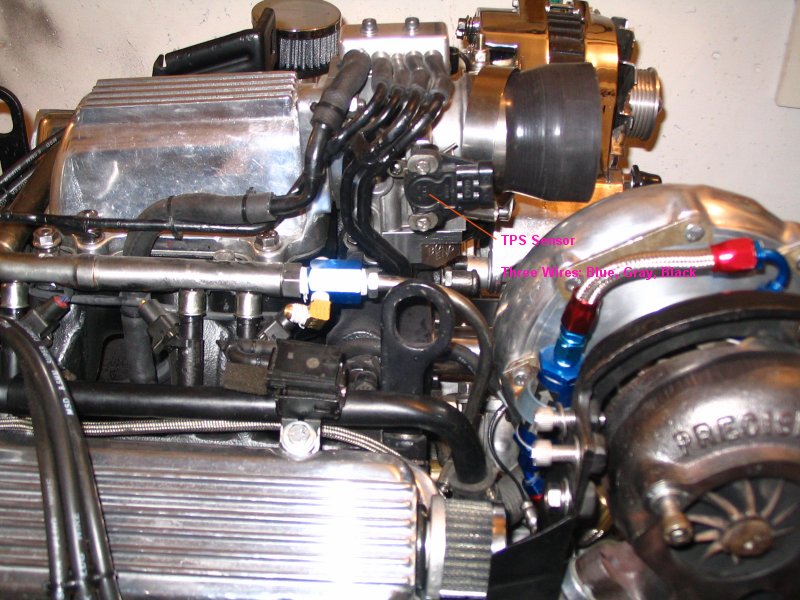 Throttle Position Sensor mounted on the throttlebody. Be sure to engage the lever from the throttlebody with the arm on the sensor so it is moved as the throttle opens.